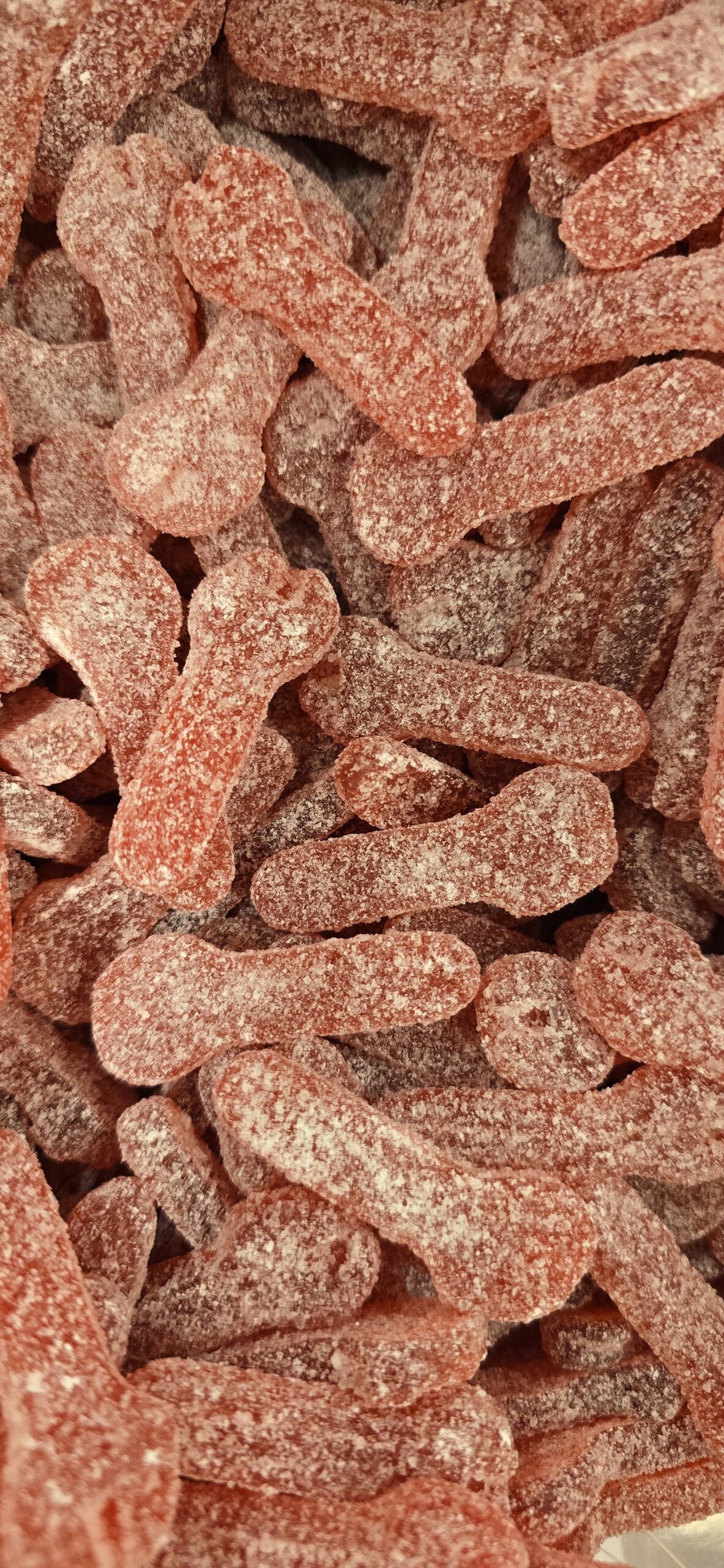 Socker, glukos-/fruktossirap, vatten, gelatin, surhetsreglerande medel (äppelsyra), arom, färgämne