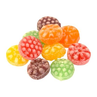 Socker, glykossirap, surhetsreglerande medel: äppelsyra, arom, färgämne: E100, E120, E133, E160a