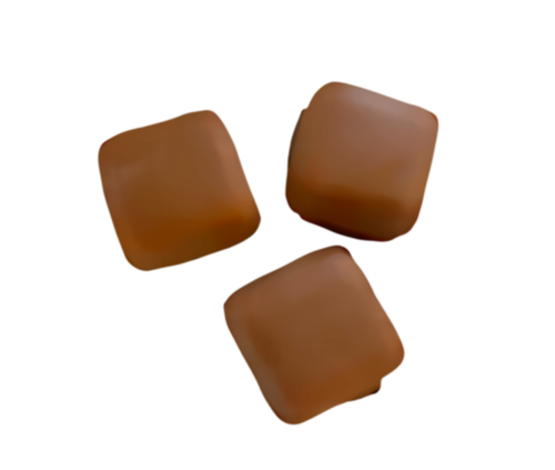 Socker, glukos-fruktossirap, vatten, fullhärdade vegetabiliska oljor (palmkärn, kokos, palm), fuktighetsbevarande medel (sorbitol), gelatin, VASSLEPULVER, (från MJÖLK), fettreducerat kakaopulver, SKUMMJÖLKSPULVER, emulgeringsmedel (SOJALECITIN, E 492), aromämne.