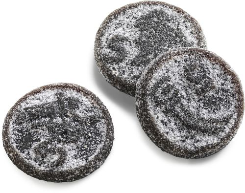 Ingredienser: Socker; glukossirap; stärkelse; mörk sirap; ammoniumklorid; lakritsextrakt (3 %); salt; karamelliserat socker; arom.